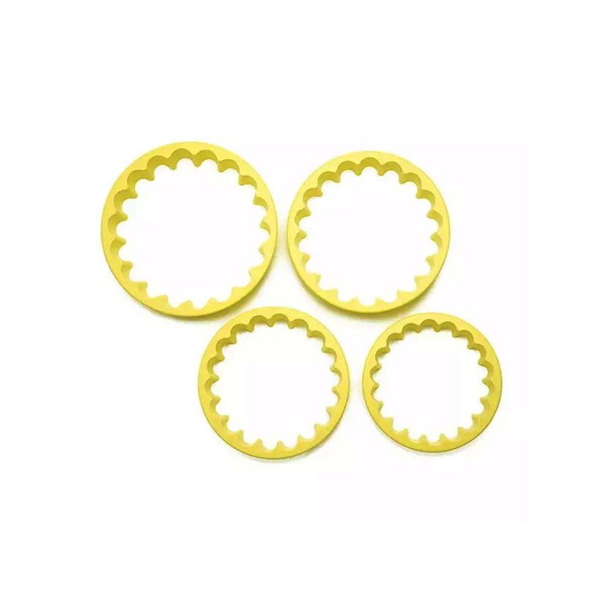 Com os cortadores Babados da BlueStar você tem inúmeras possibilidades de criação, tanto no biscuit quanto na pasta americana. Contém quatro unidades de tamanhos diferentes. Faça peças incríveis com cortes precisos!