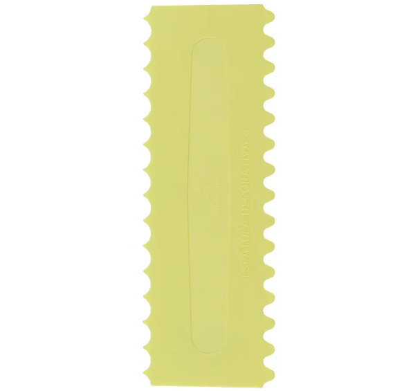 O material resistente dá firmeza às mãos e produz um resultado homogêneo a toda circunferência do bolo. Cada lado da espátula produz uma decoração diferente. Deixe sua imaginação ir longe!