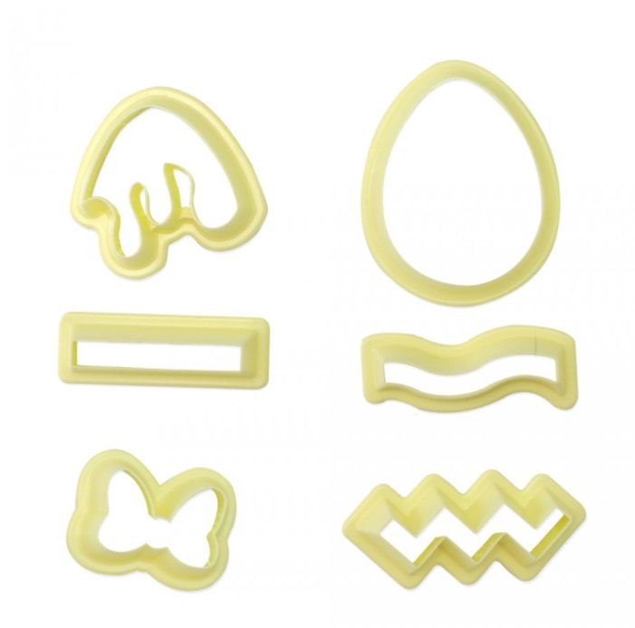 Quantidade do Kit: 06 peças (Base de Ovo, Chocolate Escorrendo, Chevron, Tira Reta, Lacinho e Tira Ondulada.