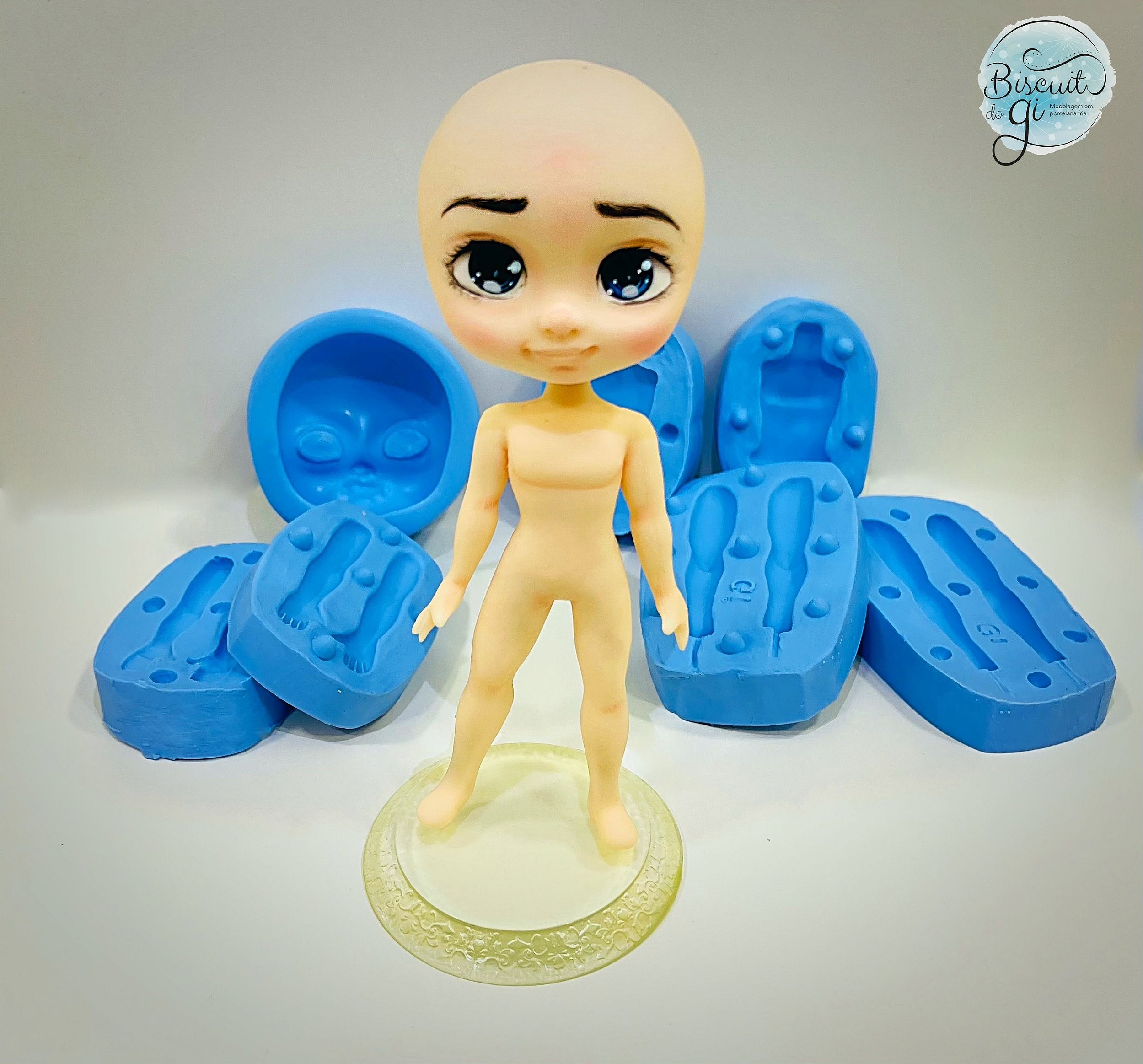 Contém 8 Moldes: 1 Cabeça / 1 Busto / 1 Pernas / 1 Braços / 1 Orelha.