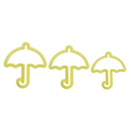 Crie lindas decorações com o cortador da BlueStar em formato de Guarda-Chuva. São três tamanhos para você fazer topos e apliques de bolos e doces, velas, chaveiros e muito mais! Use diferentes cores de massa para dar mais vida ao seu guarda-chuva!