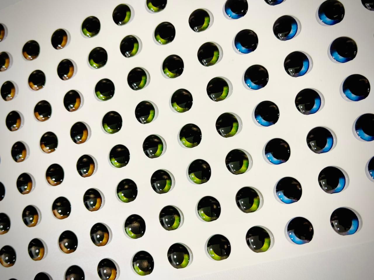 Cartela de adesivos, em material de vinil, a prova d'agua, já recortados e ideal para peças artesanais de EVA, Biscuit, papel , tecido. e feltro .São olhinhos com uma camada de resina (alto relevo que imita vidro).