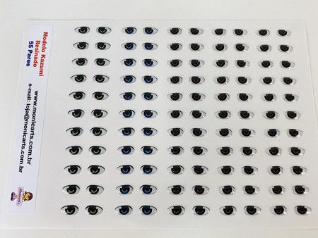 Contém 55 pares Ideal para utilizar no Molde Cute NendoGi da Coleção do Gi. Tamanho de bola de isopor adequada 30 á 40mm. Tamanho do Olho: 1.1 cm por 0.5 cm.