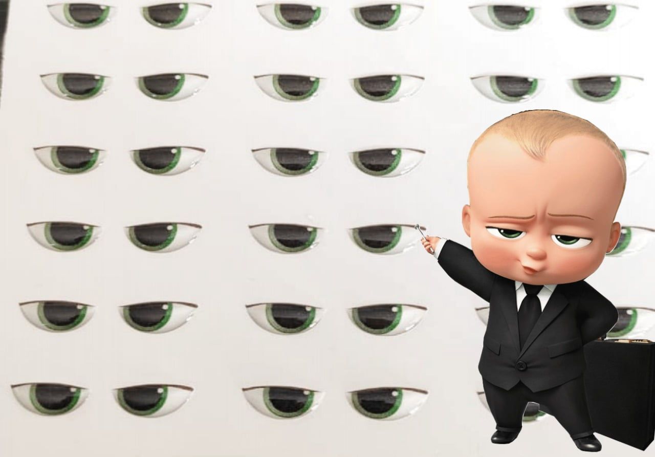A cartela P (9,8 x 3,8 mm) vem com 32 pares de olhos, ideal para cabeças de 30 a 50mm